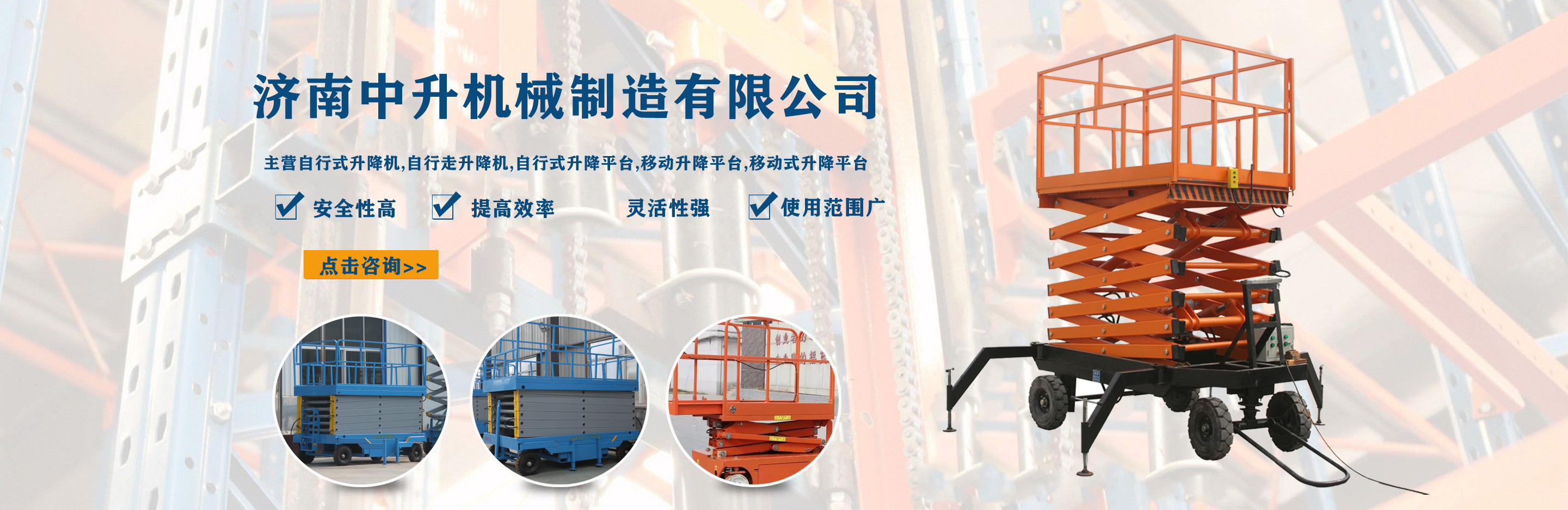 濟(jì)南中升機(jī)械制造有限公司主營自行式升降機(jī),自行走升降機(jī),自行式升降平臺(tái),移動(dòng)升降平臺(tái),移動(dòng)式升降平臺(tái)等產(chǎn)品,產(chǎn)品廣泛用于廠房維護(hù)、工業(yè)安裝、設(shè)備檢修、物業(yè)管理、倉庫、航空、機(jī)場、港口、車站、加油站、體育場、展覽館等多種行業(yè)和場所, 公司設(shè)備精良、工藝合理、檢測手段齊全,技術(shù)力量充足,公司創(chuàng)立伊始即本著“專注、專心”的經(jīng)營理念,依托技術(shù)團(tuán)隊(duì)優(yōu)勢和設(shè)備硬件保障,全力打造良心的升降平臺(tái)企業(yè)?! ∥夜臼冀K以“品質(zhì)為本,服務(wù)至上”作為企業(yè)宗旨。只要你訂購了我公司的產(chǎn)品,無論你身處何方,我們都會(huì)及時(shí)派出技術(shù)人員為你服務(wù)!...